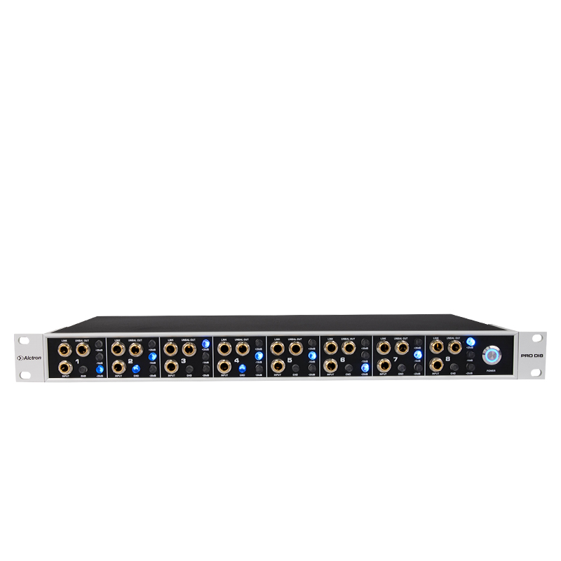 PRO DI8是一款专业的8通道DI盒,适用于录音室和舞台表演。 通过PRO DI8将吉他,贝斯,键盘(带有线性输入接口的此类设备)的输入信号发送到调音台和录音机,然后调节阻抗匹配和信号整合功能使得输出的音质更加温暖细腻且饱满。前后面板上的各种开关和旋钮,可以让您监听到出色的输出音质。