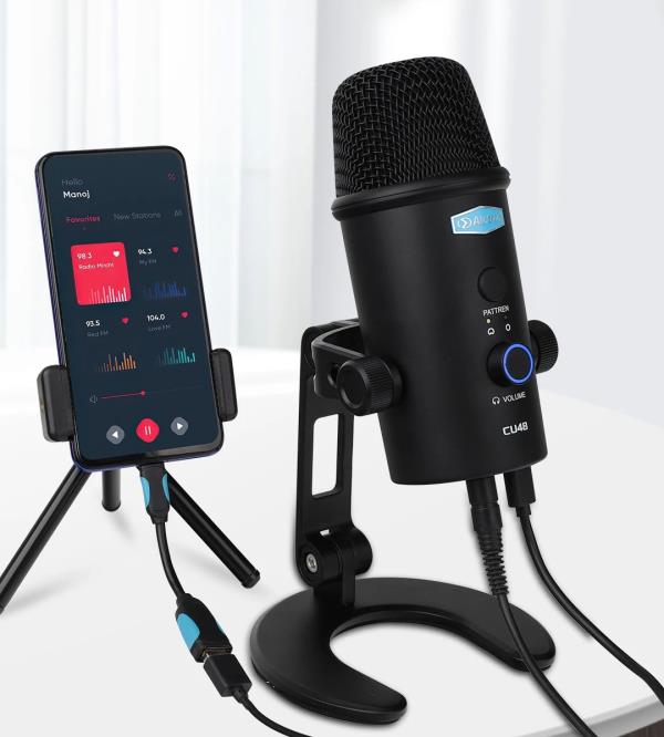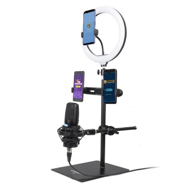 4、麦克风:想要高质量的收音,必须配置麦克风。手机直播一般选5V的电容麦克风,也可选择USB电容麦克风。USB麦克风无需另外连接声卡,直接连接手机就能使用,操作相对比较方便。