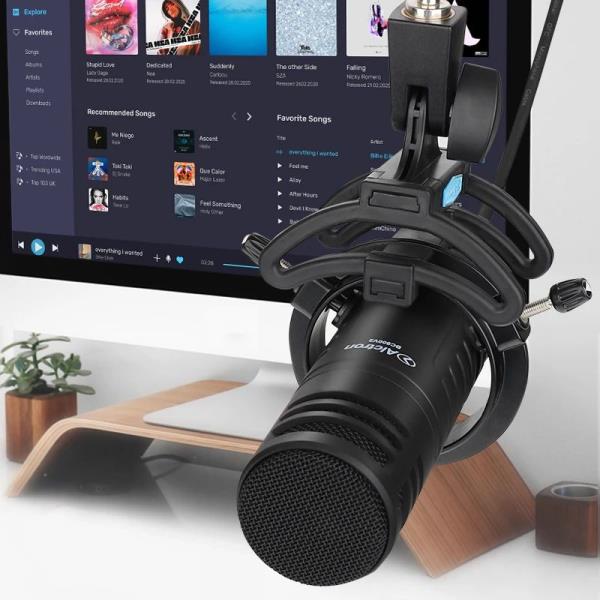 把麦克风放在一个麦克风支架上,意味着歌手不会拿着麦克风。这可以有效减少机械噪音,并确保没有东西会挡住麦克风网头和音头,从而让声音更好地发展。