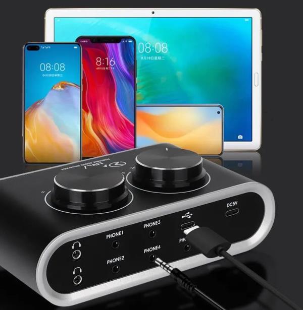 可同时连接两个监听耳机,支持双人直播,也可作为二路耳放使用。