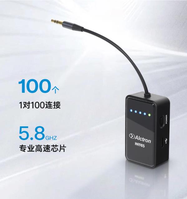 无线束缚 无限自由 5.8Ghz高速传播,专业级低延迟 30米远距传输,可连100个耳机 兼容多数声卡,快速自动配对 "无线直播,唱跳无拘束"